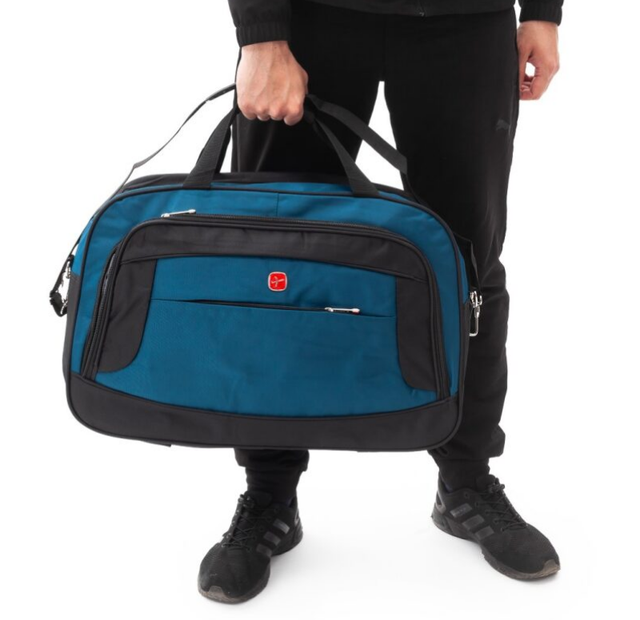 Дорожня сумка універсального призначення, зроблена в сучасному дизайні. Виготовлена з міцного водовідштовхувального поліестеру, стійка до зношування та деформацій. Завдяки зручним ручкам, регульованим плечовим ременям і спеціальній стрічці-фіксатору для кріплення на валізу, вона ідеально підходить для подорожей і щоденного використання.